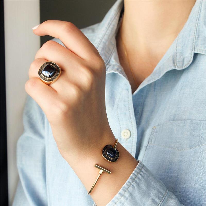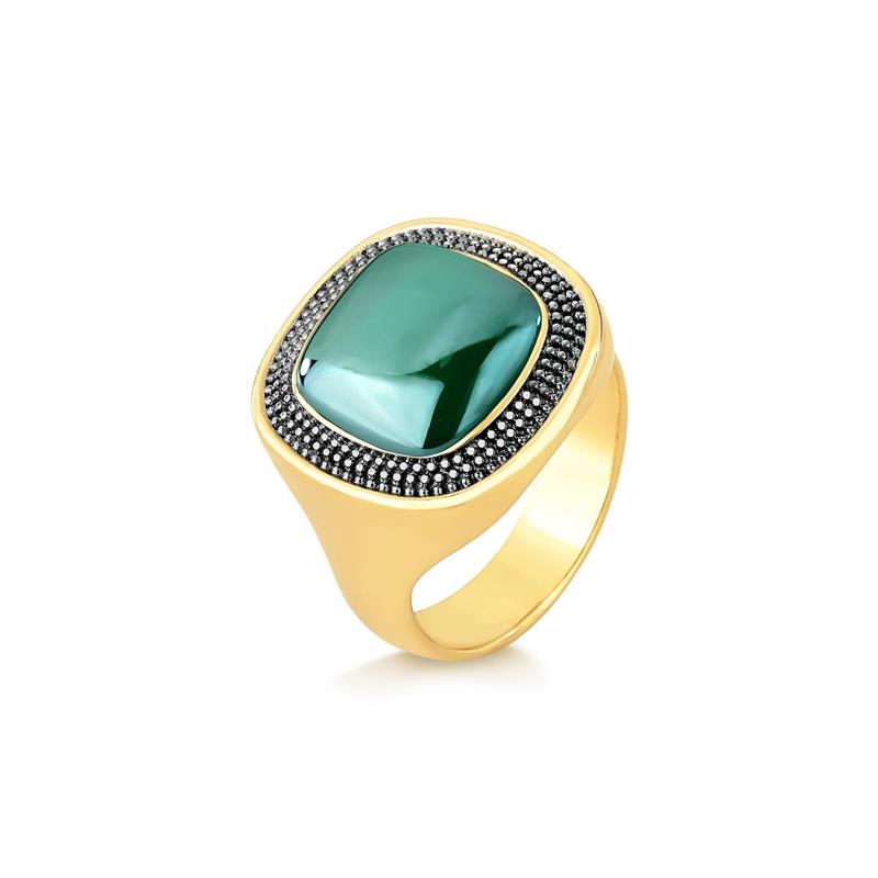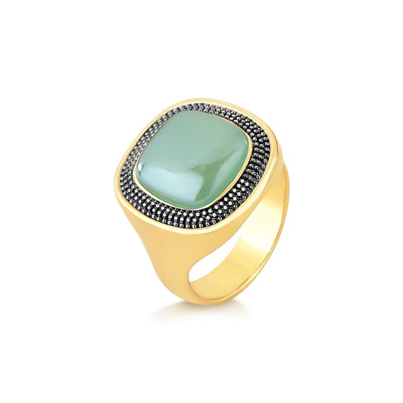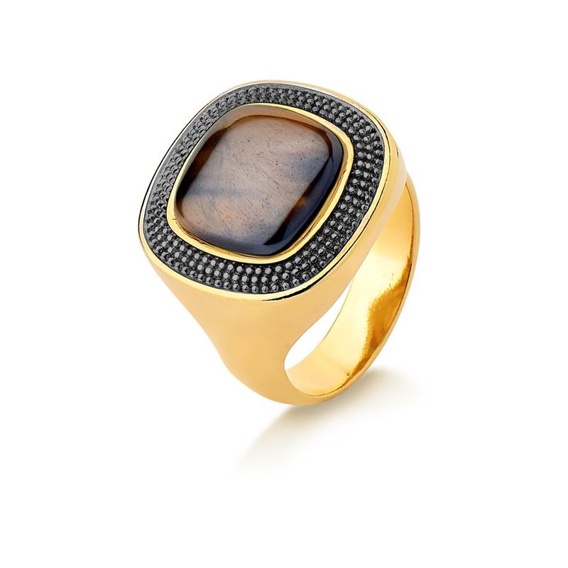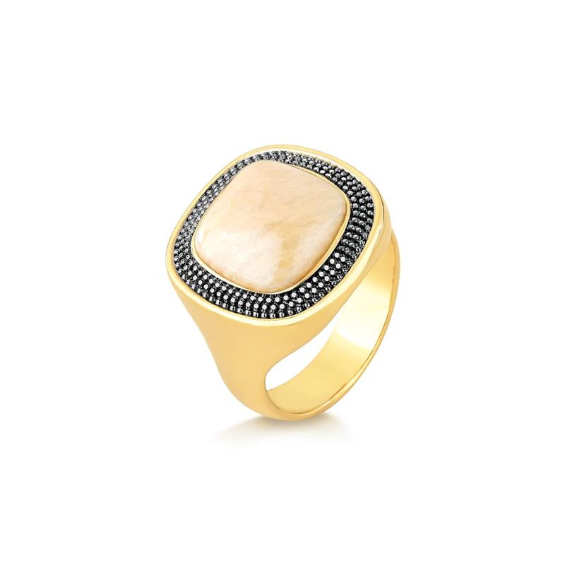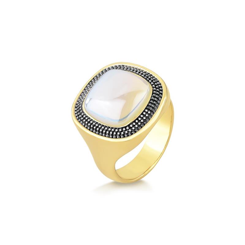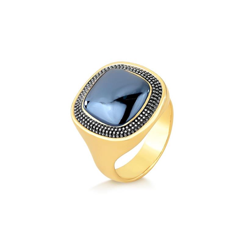 ANEL FOLHEADO A OURO E RÓDIO NEGRO COM EFEITO PEROLADO
