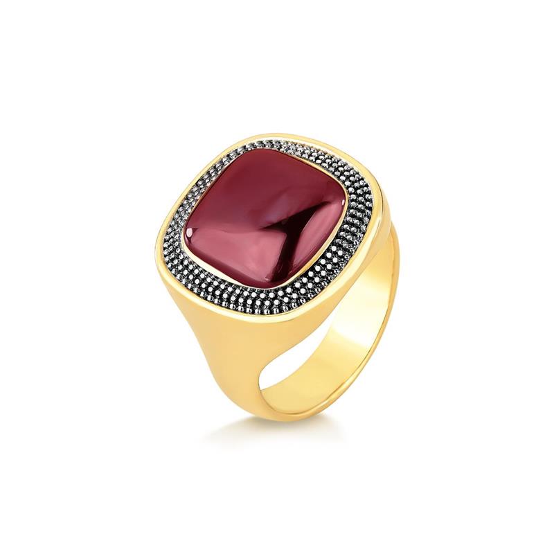 Anel folhado a ouro com aplicação de caneta de ródio negro