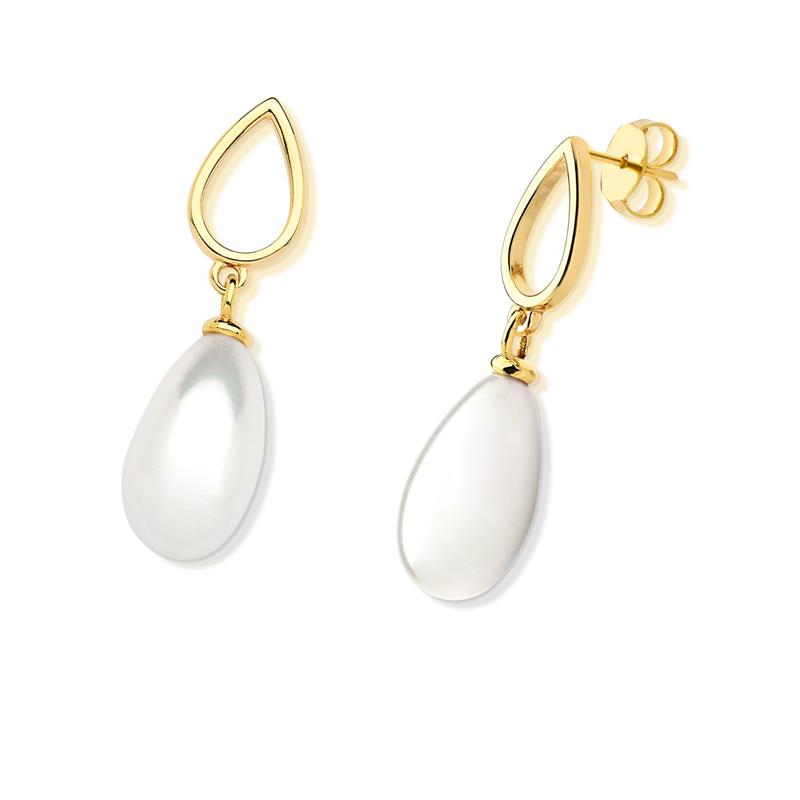 Brinco folheado a ouro com pérola gota da coleção Prolas, apresentando dimensões generosas de 18x10mm que garantem presença marcante. Com 4cm de altura, este acessório oferece elegância clássica e sofisticação em cada movimento, ideal para quem busca peças versáteis que transitam entre ocasiões formais e do dia a dia. O folheamento em ouro assegura durabilidade e brilho duradouro, mantendo a qualidade estética por longo período.