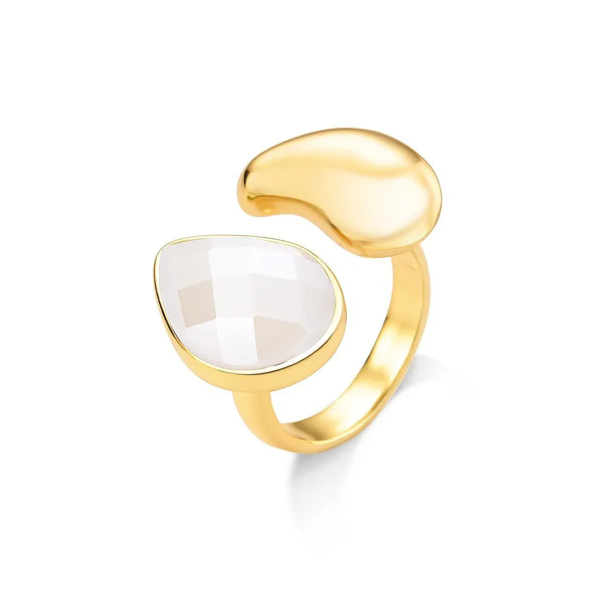 Apresentamos o Anel Folheado a Ouro da Coleção Acqua Luna, onde a elegância do mar encontra o encanto celestial. Este anel de regulagem apresenta uma deslumbrante pedra facetada em formato de gota, medindo 10x14mm, cuidadosamente selecionada para refletir a luz como o brilho da lua sobre o oceano. Cada detalhe revela a inspiração na fluidez da água e na delicadeza do luar, criando uma peça que transcende a simples joalharia.