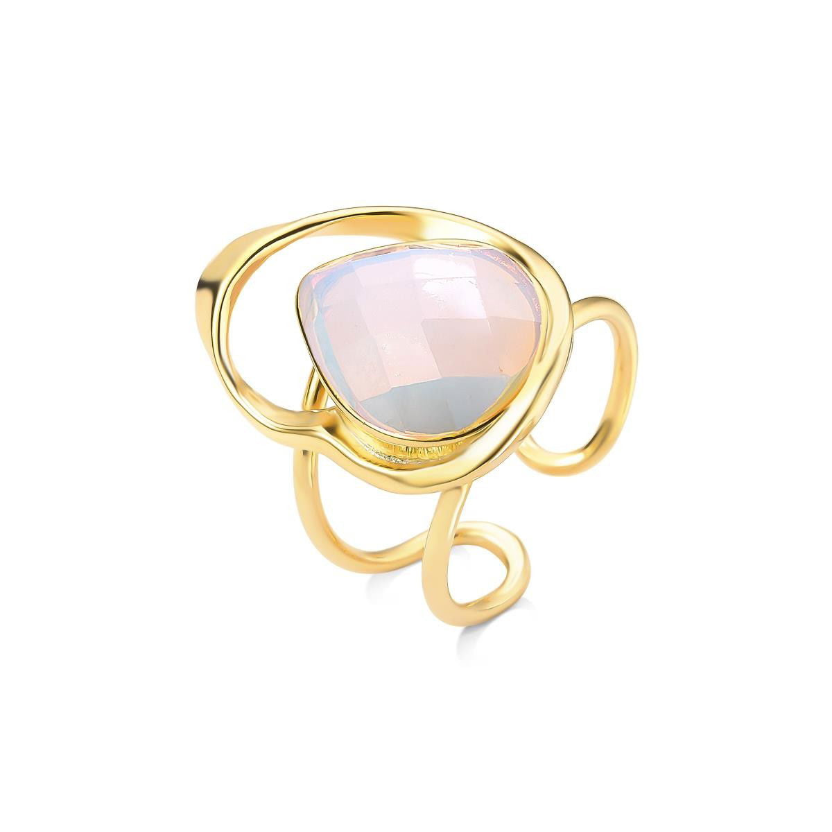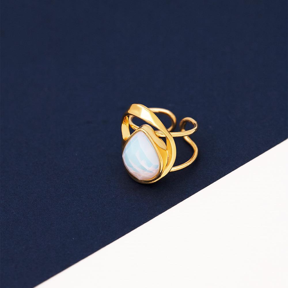 As pedras facetadas peroladas, escolhidas especialmente para esta coleção, refletem a luz como o brilho da lua sobre o oceano.