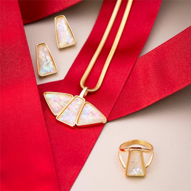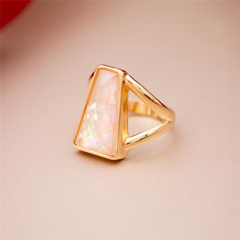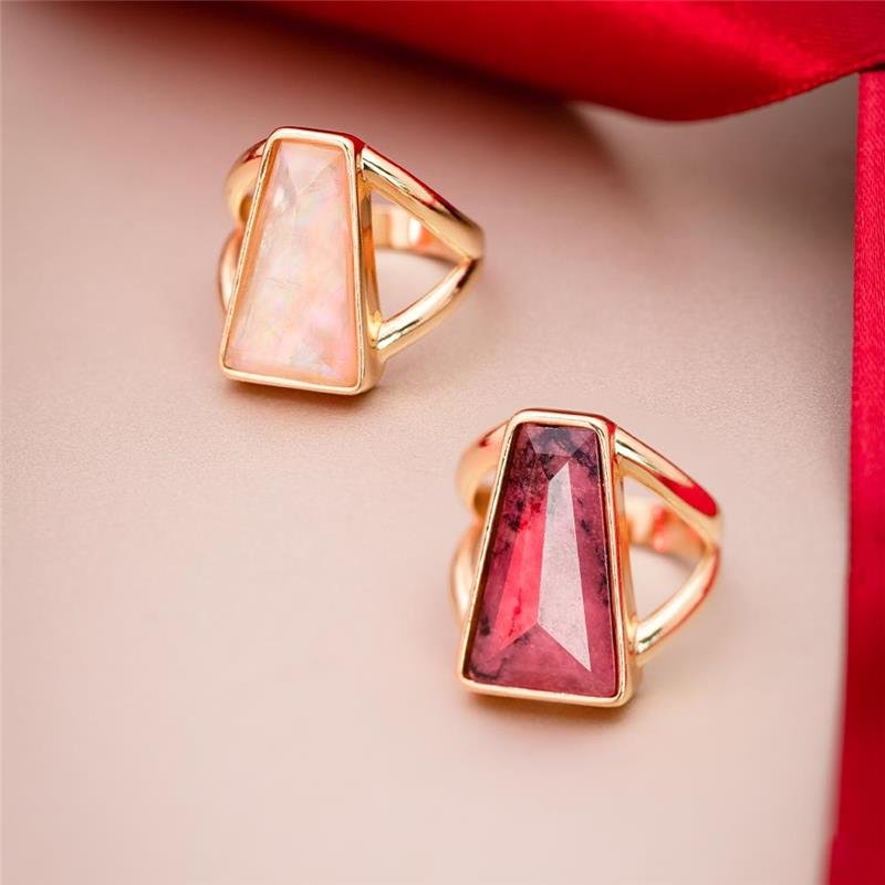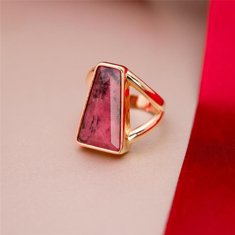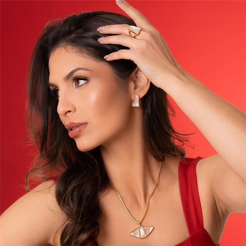 Apresentamos a Coleção Radiante, onde a audácia encontra a elegância. Este anel folheado a ouro apresenta uma pedra facetada em trapézio de 11x19mm, cuidadosamente selecionada pelo seu brilho singular. O design equilibra referências clássicas com uma estética contemporânea, utilizando volumes estratégicos e geometrias precisas para criar presença marcante.