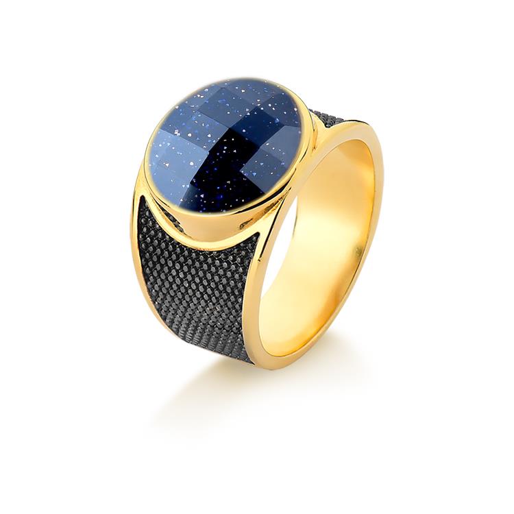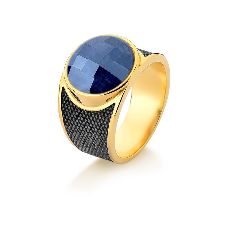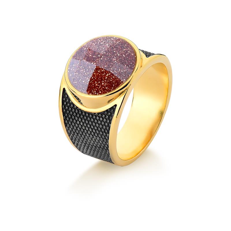 ANEL FOLHEADO A OURO E RÓDIO NEGRO