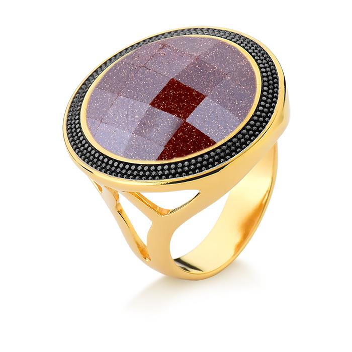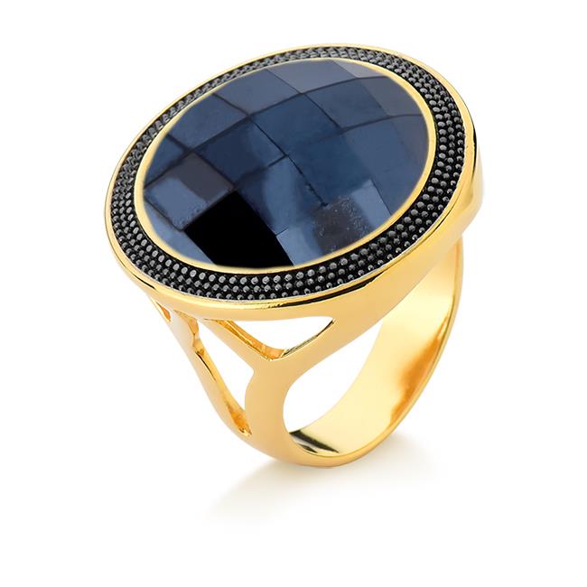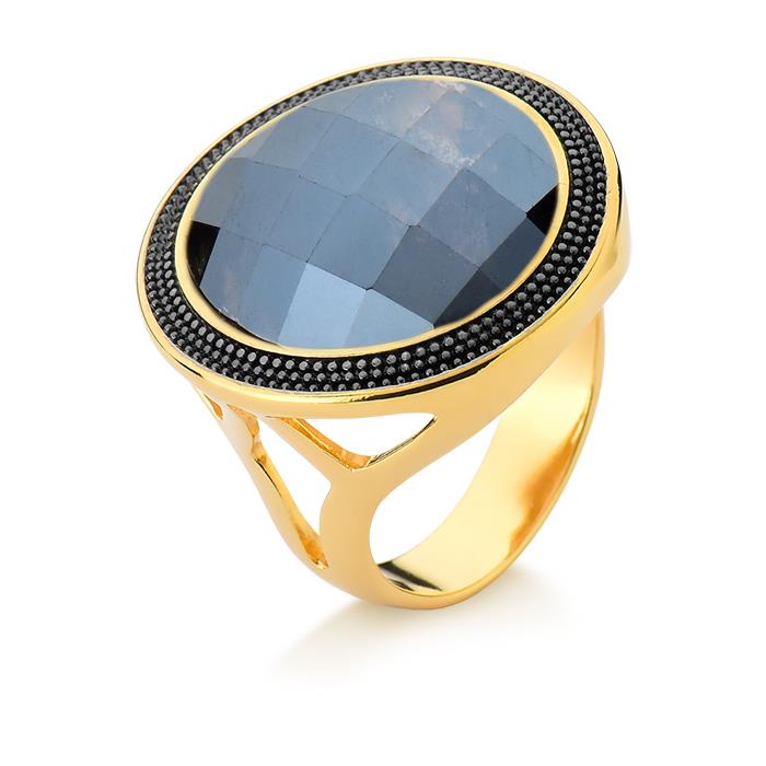 ANEL FOLHEADO A OURO E RÓDIO NEGRO