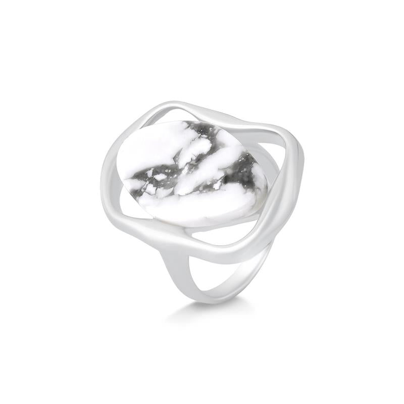 Elegância geométrica que transcende o ordinário. Este anel folheado a prata apresenta uma chapa folha de 14x22mm, combinando proporções harmoniosas com um design contemporâneo que complementa qualquer estilo.