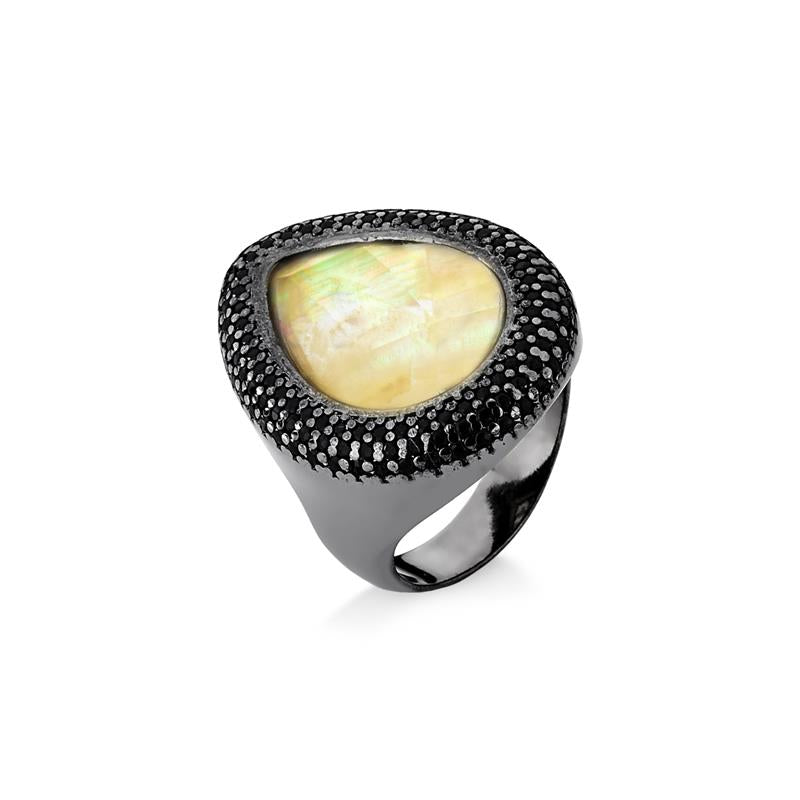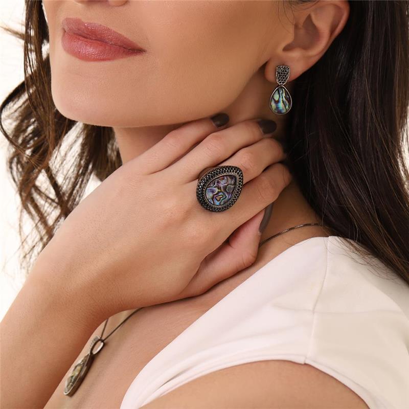 Sofisticação em cada detalhe. Este anel folheado a ródio negro apresenta uma pedra em formato gota de 13x18mm, que captura luz com elegância minimalista. O acabamento em ródio negro confere um toque contemporâneo e versátil, harmonizando com qualquer estilo pessoal.