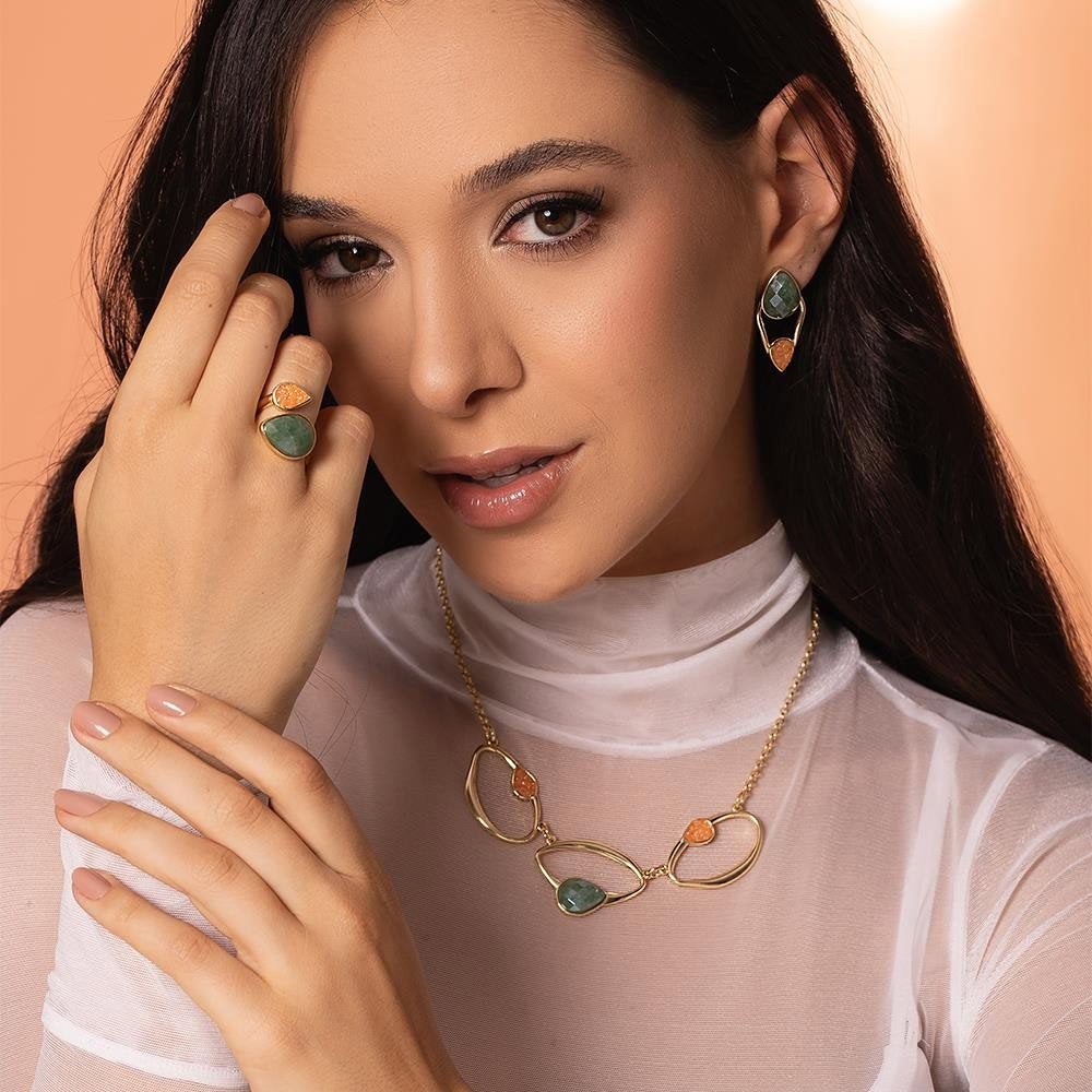 Cada detalhe reflete autenticidade e estilo, inspirado na fluidez das formas orgânicas da natureza. Regulável do número 14 ao 18 e do 20 ao 24, este anel se adapta perfeitamente ao seu dedo. Versátil para o dia a dia ou ocasiões especiais, é a peça que faltava para completar seu visual com sofisticação.