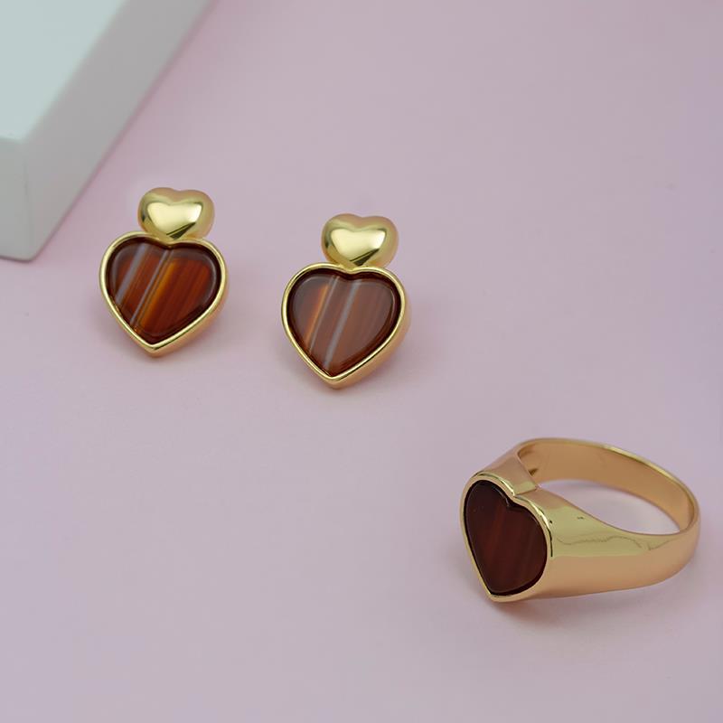 O folheado a ouro confere um brilho premium que realça a cor vibrante da ágata vermelha, criando um contraste perfeito para qualquer ocasião. Ideal para quem busca um acessório versátil que expressa personalidade e estilo. Uma escolha que une tradição e modernidade, perfeita para presentear ou se presentear.