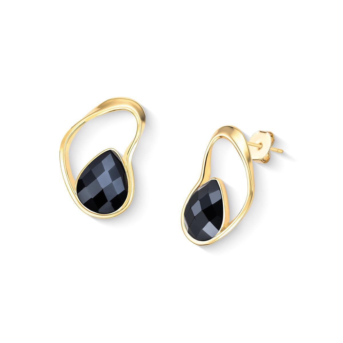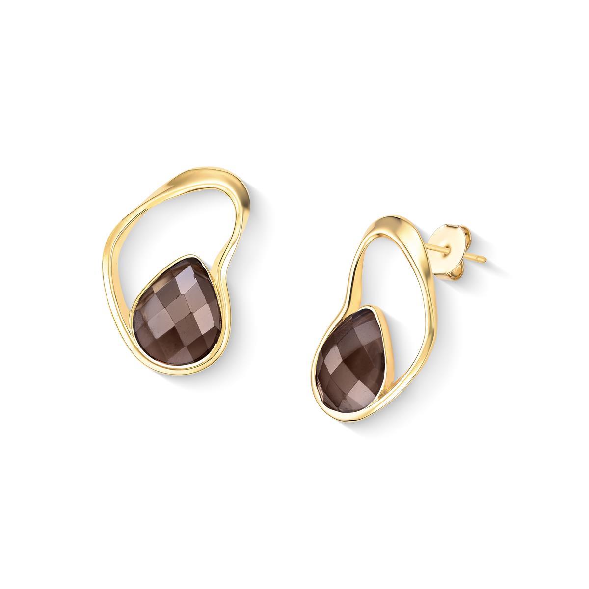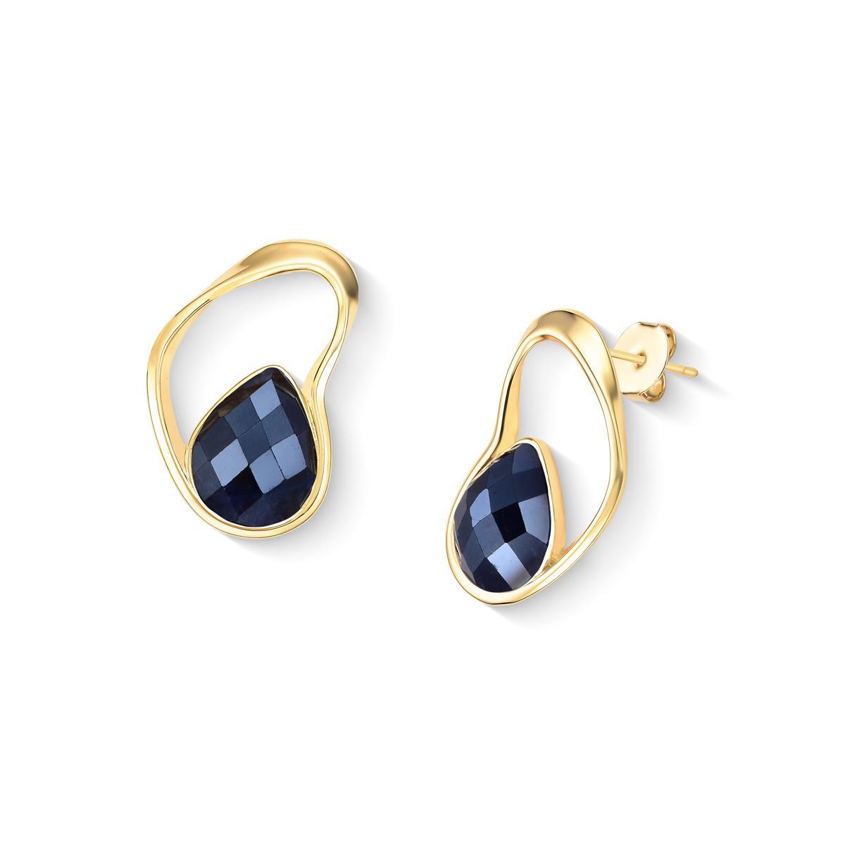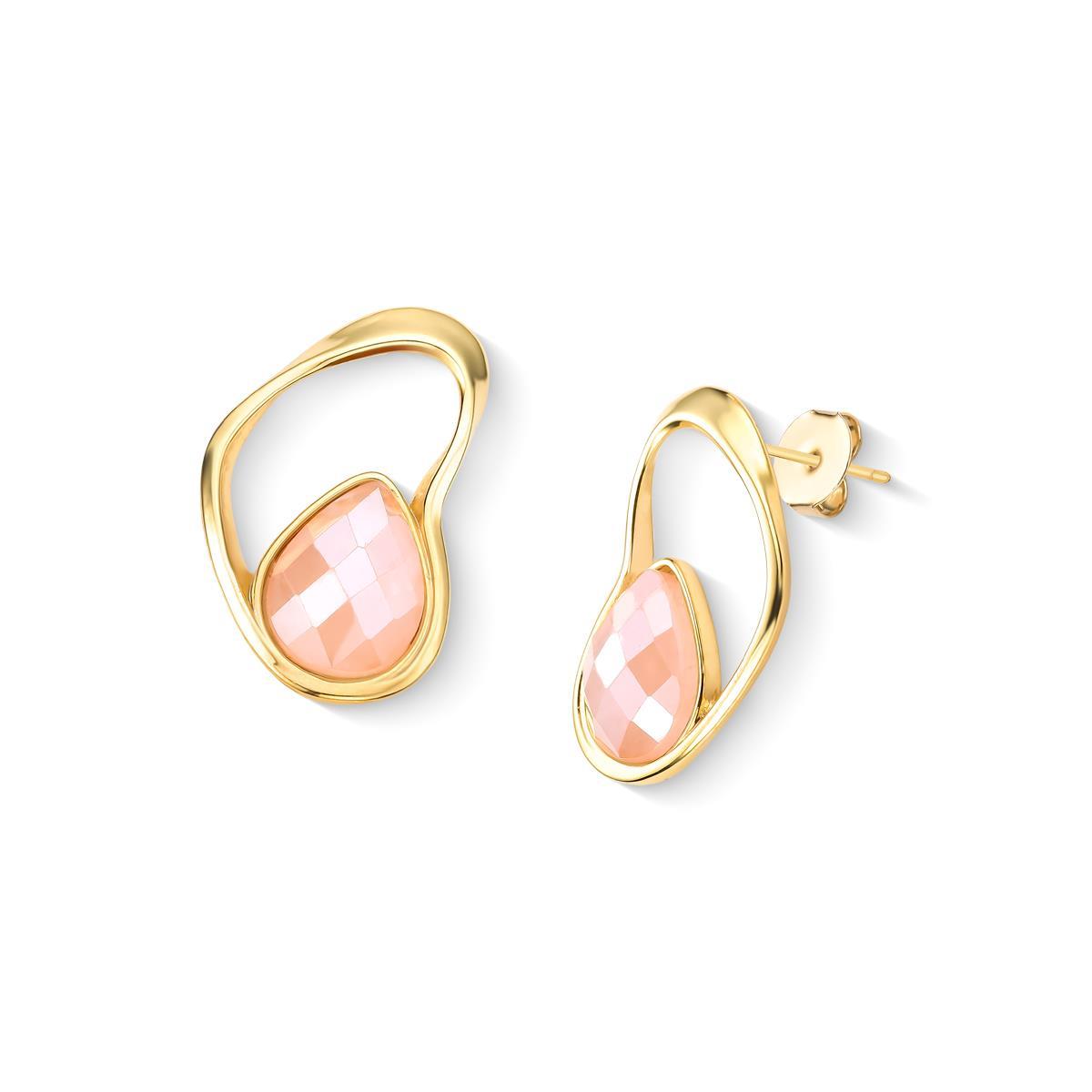 Coleção Acqua Luna: brinco folheado a ouro com altura de 3,2 cm e pedra facetada em formato de gota (10x14mm). Inspirado na harmonia entre o mar e a lua, cada peça apresenta design orgânico que reflete luz como o brilho lunar sobre o oceano. As pedras peroladas facetadas foram selecionadas para capturar essa luminosidade característica.