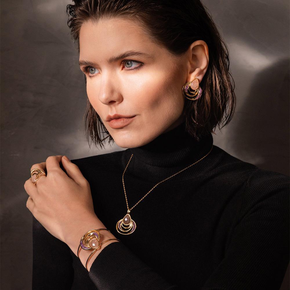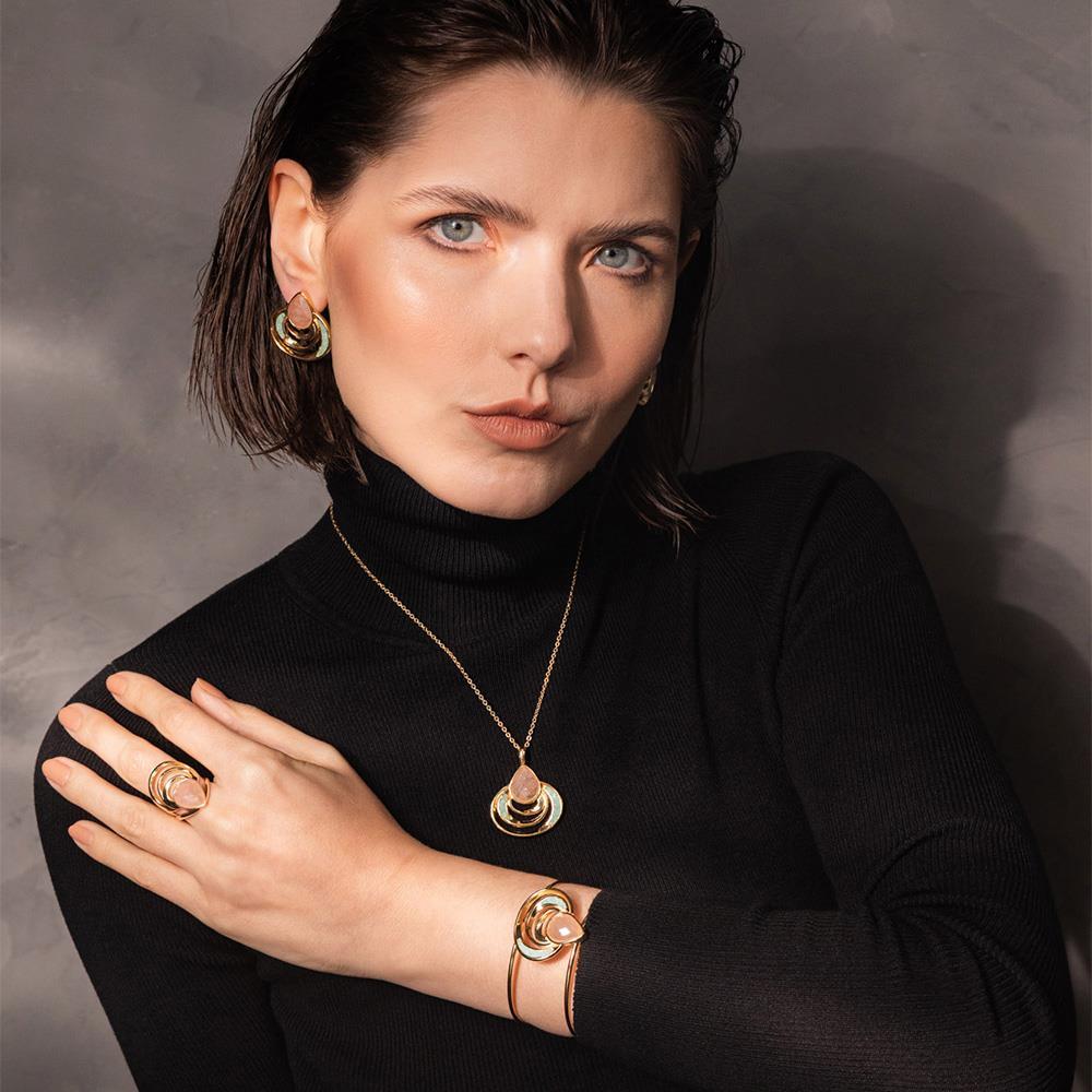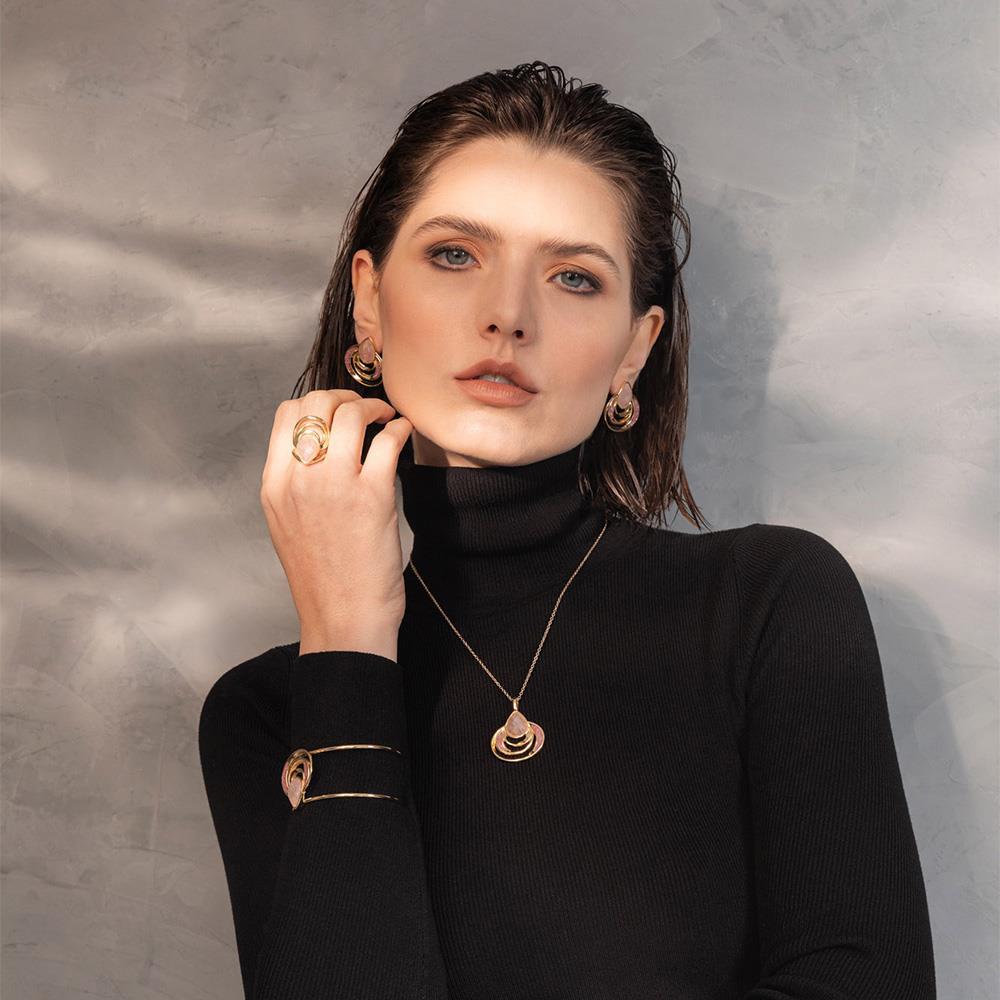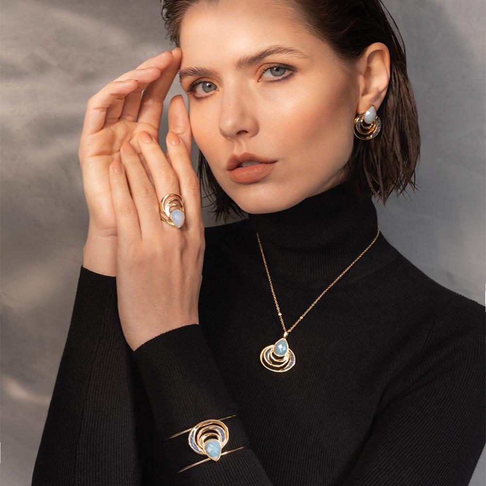As pedras peroladas refletem luminosidade similar ao luar sobre o mar, enquanto a estrutura orgânica evoca transformação e poder interior. Uma peça que transcende o adorno, carregando narrativa poética e propósito simbólico para quem a usa.