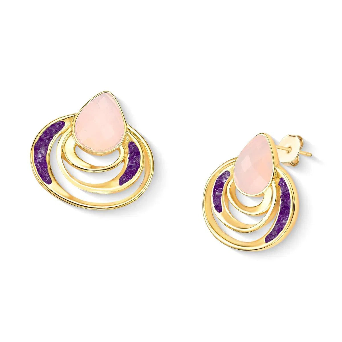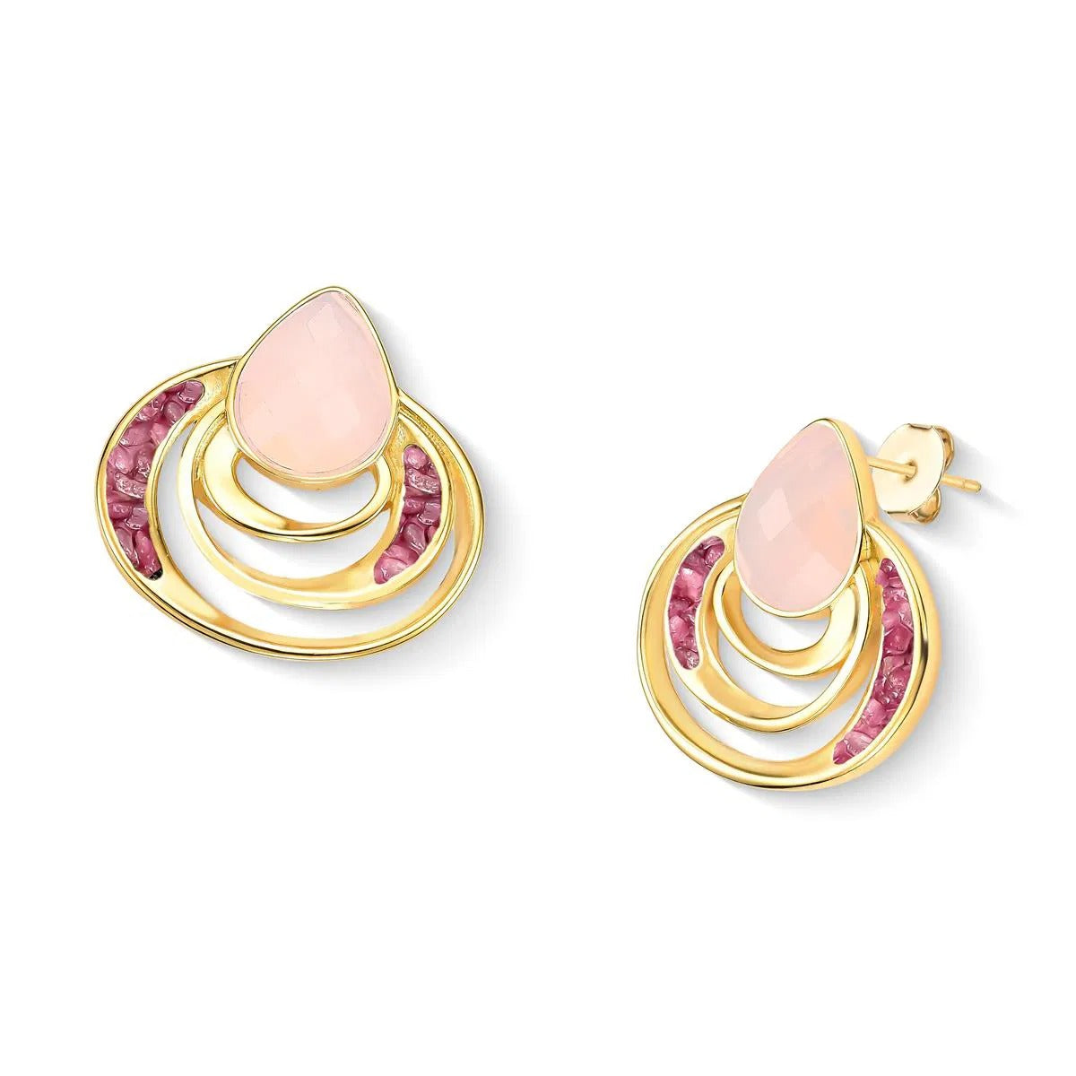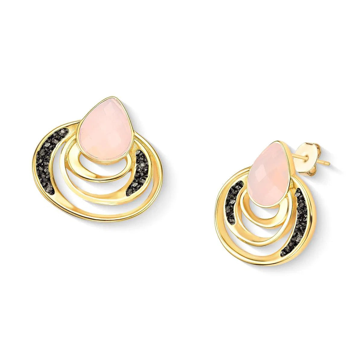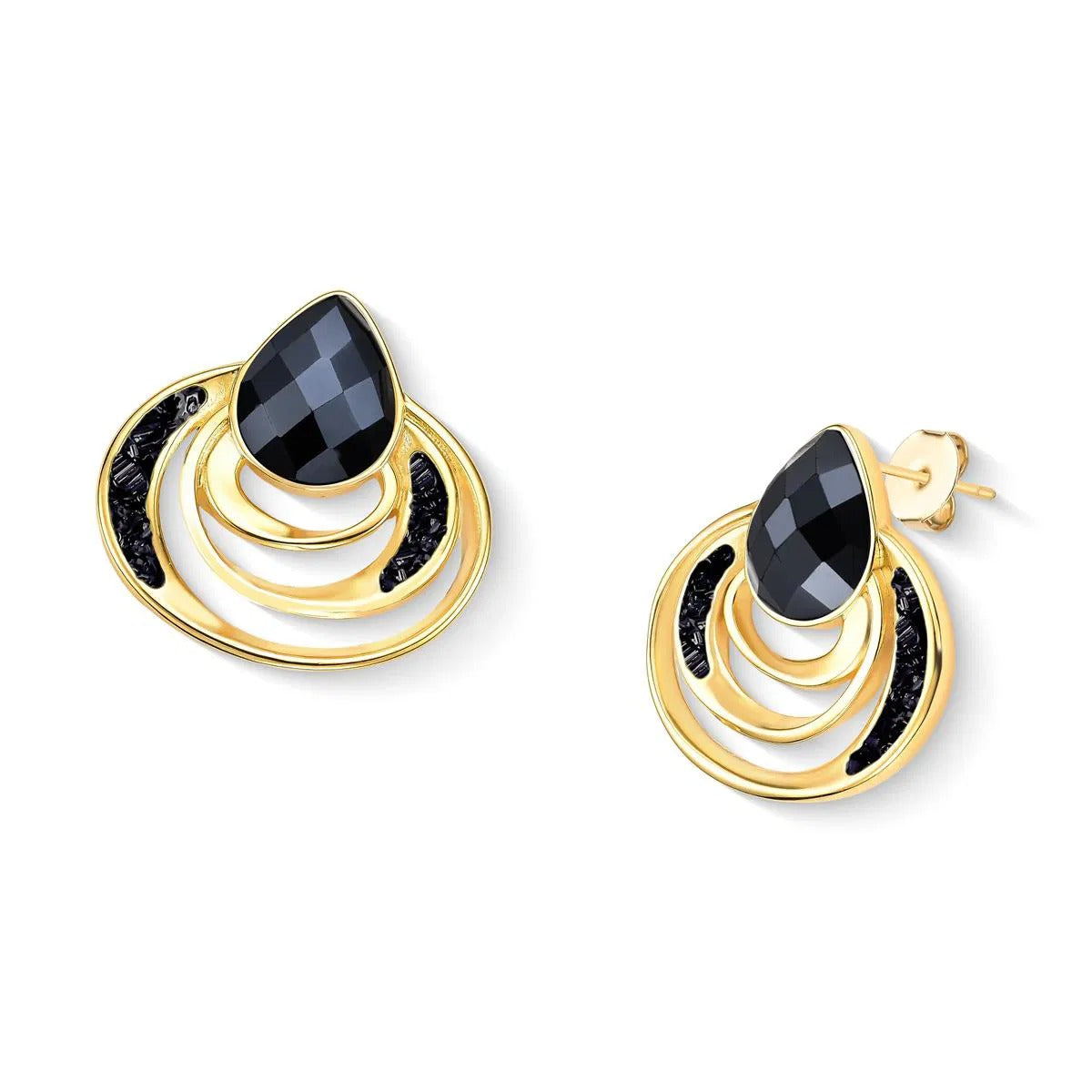 BRINCO FOLHEADO A OURO - COLEÇÃO ACQUA LUNA Peça de 3,1cm de altura que combina elegância e significado. Apresenta pedra facetada em formato de gota (10x14mm) complementada por detalhes em pedras fragmentadas que capturam a luz com refinamento. Inspirada na fluidez das águas e no brilho lunar, esta coleção traduz a sensibilidade do oceano em design contemporâneo.