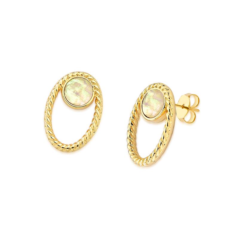 Descubra a elegância do mar em cada movimento. O Brinco Folheado a Ouro da Coleção Conchas une a beleza natural da pedra abalone e opala do mar com o refinamento do ouro. A pedra de concha, sobreposta por um cristal facetado de 8mm, captura a luz de forma hipnotizante, enquanto os detalhes vazados do metal complementam seu design sofisticado.
