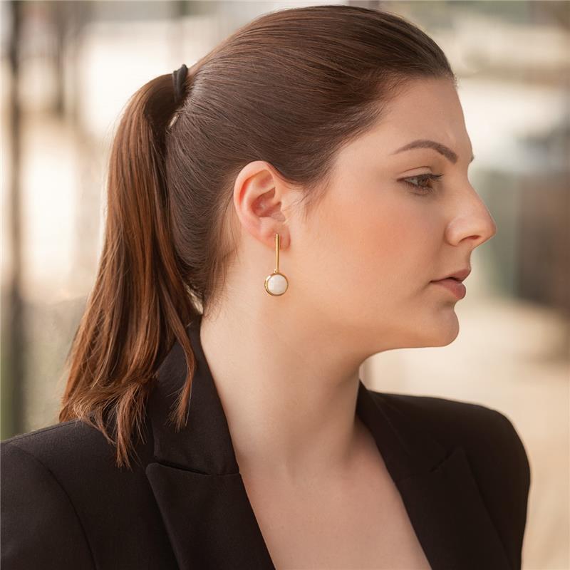 Descubra a elegância atemporal do BRINCO FOLHEADO A OURO da Coleção Facetada Perolada. Cada peça apresenta uma pedra natural facetada com efeito perolado em formato redondo de 12mm, conferindo brilho sofisticado e movimento à luz. Com 4cm de altura total, este brinco equilibra proporção e impacto visual, complementando tanto looks minimalistas quanto mais elaborados.