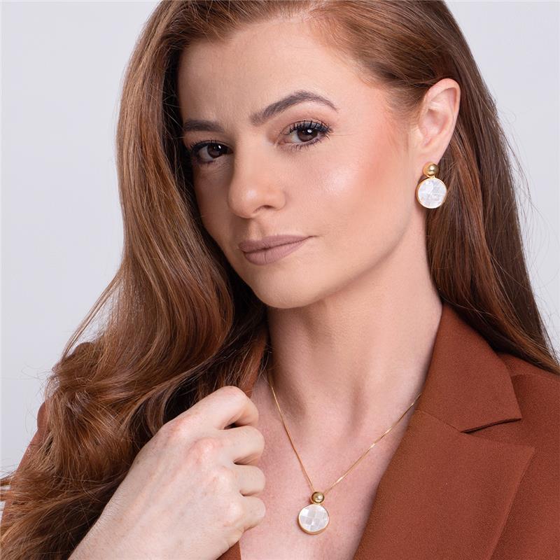 Apresenta pedra redonda de 17mm que confere elegância e sofisticação ao visual. O folheamento em ouro garante brilho duradouro e resistência ao uso diário. Ideal para quem busca acessórios refinados que combinam tradição artesanal com design contemporâneo. Perfeito para complementar tanto looks casuais quanto ocasiões especiais.
