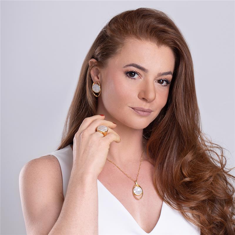 O banho de ouro confere durabilidade e brilho duradouro, enquanto a pedra madre proporciona um toque natural e exclusivo. Ideal para quem busca um acessório versátil que transita entre o dia e a noite com estilo.