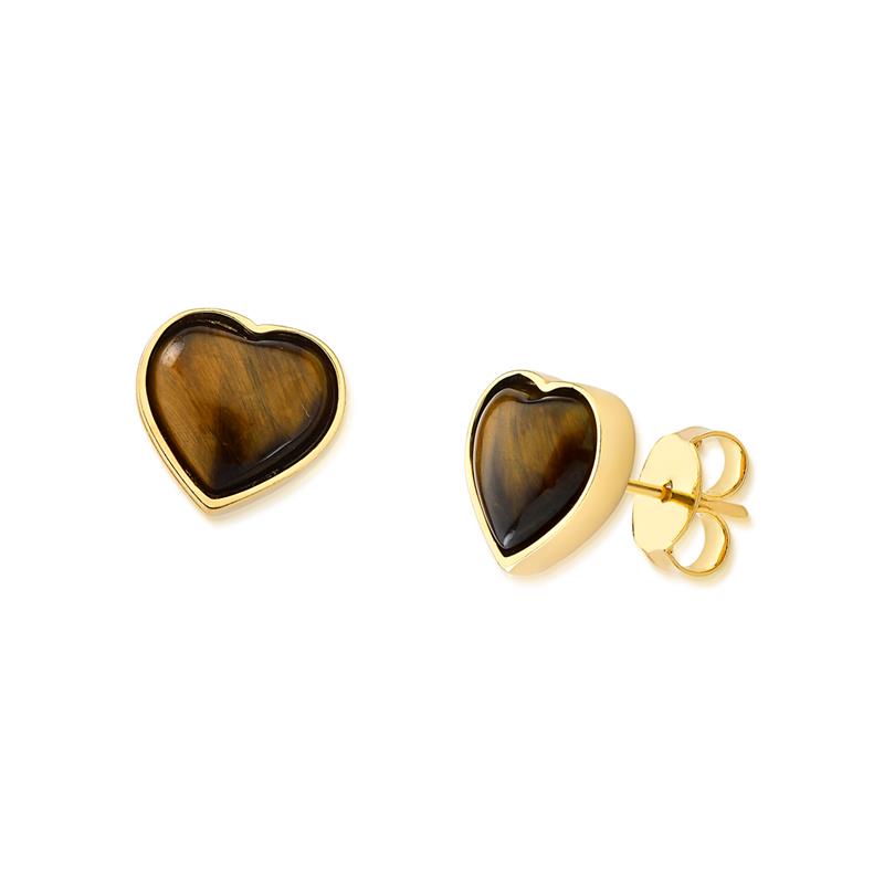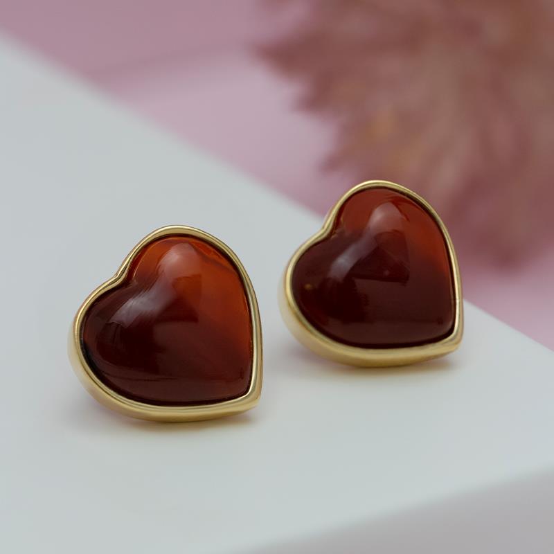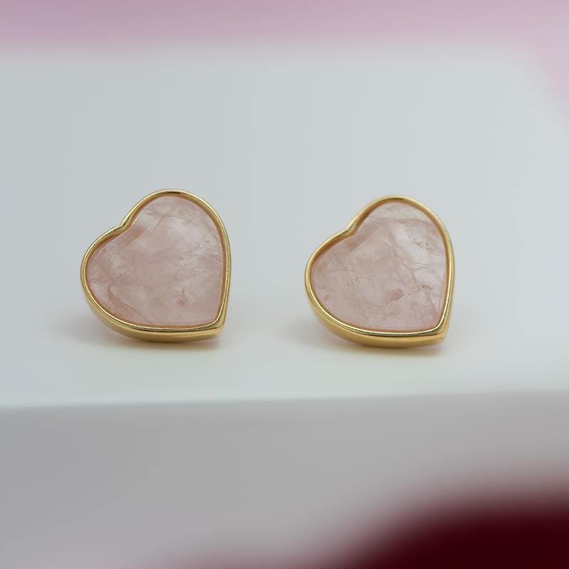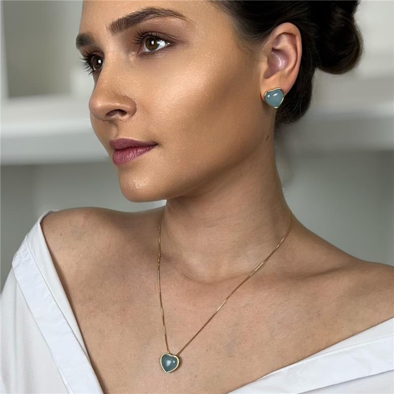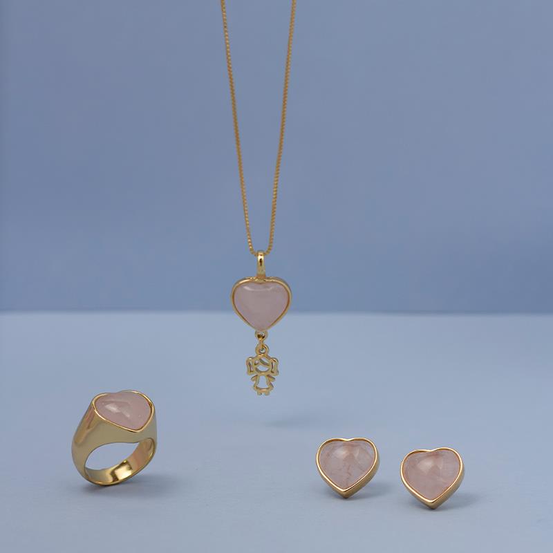 Brinco folheado a ouro da Coleção Coração, com pedra cabochão em formato de coração medindo 12x13mm. Peça delicada com altura total de 1,5cm, ideal para quem busca acessórios elegantes e sofisticados.