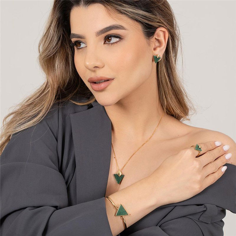 A geometria triangular da pedra de 15 mm confere um caráter contemporâneo e marcante ao design, enquanto a altura de 1,5 cm proporciona visibilidade sem excessos. Este formato inovador cria um ponto focal interessante no rosto, complementando tanto estilos minimalistas quanto mais ousados. A combinação harmoniosa entre o metal dourado e a pedra triangular resulta em um acessório versátil, perfeito para elevar sua aparência em qualquer ocasião.
