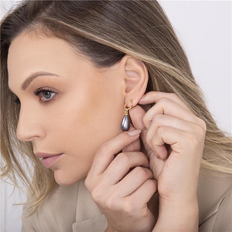 A pérola gota é um símbolo atemporal de refinamento, e esta composição a valoriza perfeitamente. Recomendado para quem aprecia joias que combinam tradição com design contemporâneo, este brinco complementa tanto looks minimalistas quanto mais elaborados. Investir em peças folheadas de qualidade significa escolher acessórios que acompanham seu estilo sem comprometer a elegância.