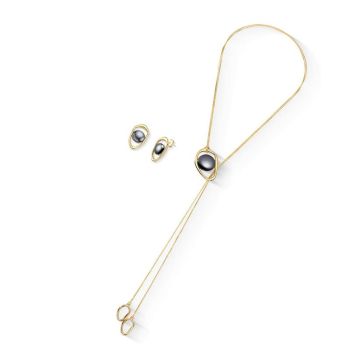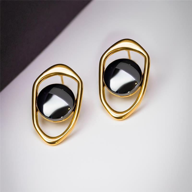 Descubra o poder e a elegância da Coleção Hematita. Estes brincos folheados a ouro combinam a sofisticação de uma pedra cabochão de 12mm com um design contemporâneo que realça qualquer look.