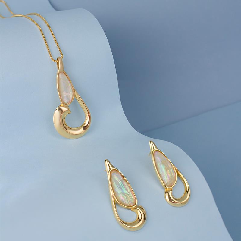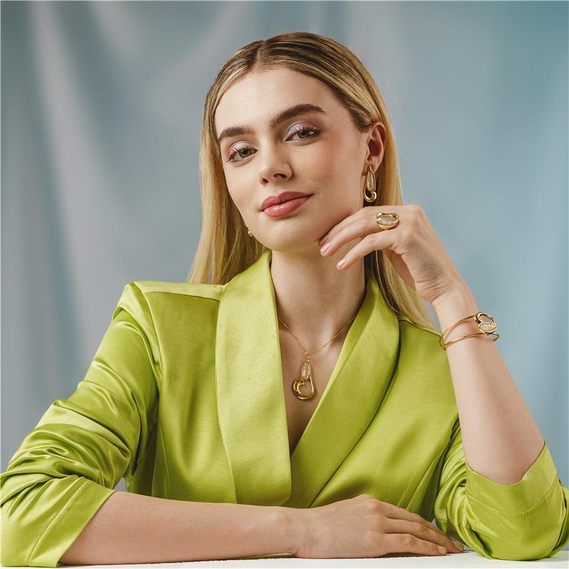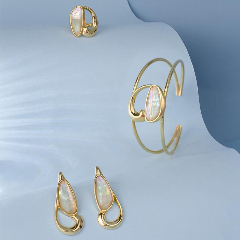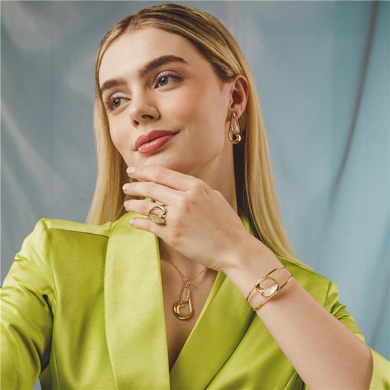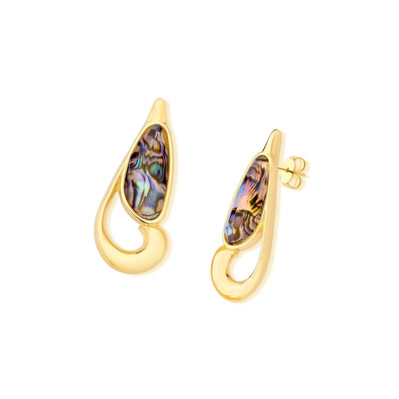 BRINCO FOLHEADO A OURO - COLEÇÃO FLUIR Peça de 3,7cm de altura que apresenta uma pedra em formato de triângulo escaleno facetado (9x18mm). Inspirado nas formas dinâmicas da natureza, este brinco traduz a fluidez das ondas oceânicas em design contemporâneo.