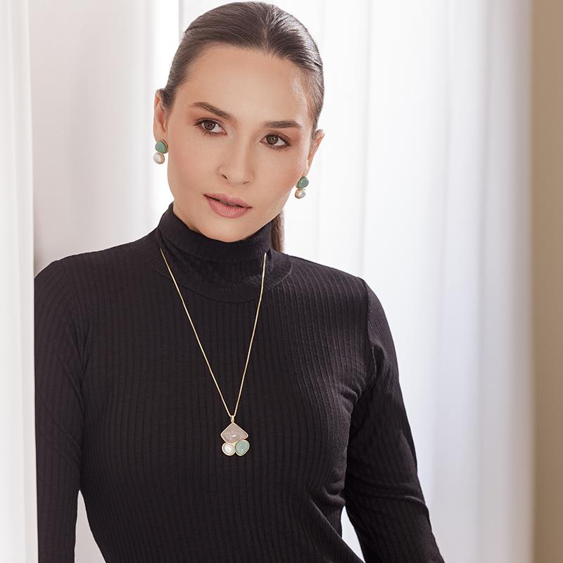 As pérolas, reconhecidas por sua pureza e sofisticação, conferem um brilho suave e intemporal, enquanto as gemas naturais reforçam a autenticidade do design. Uma peça que transcende tendências, enraizada na tradição e na atemporalidade do estilo clássico.