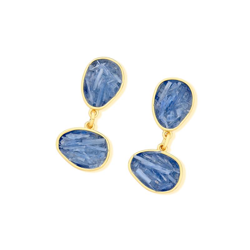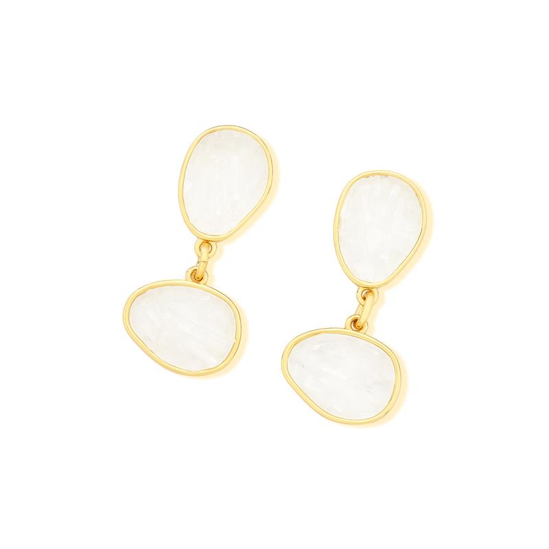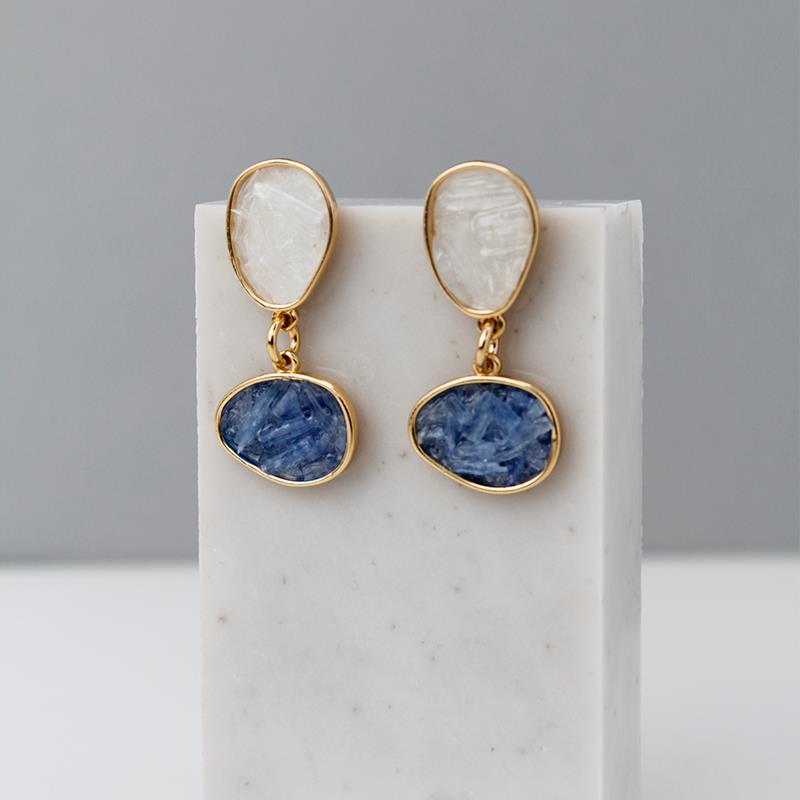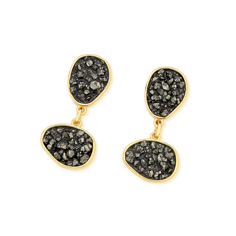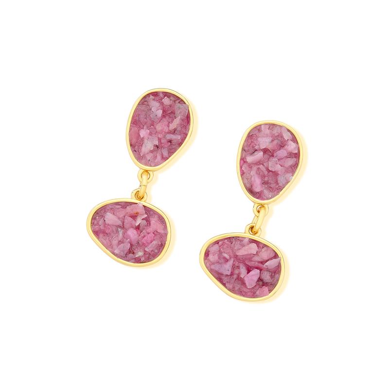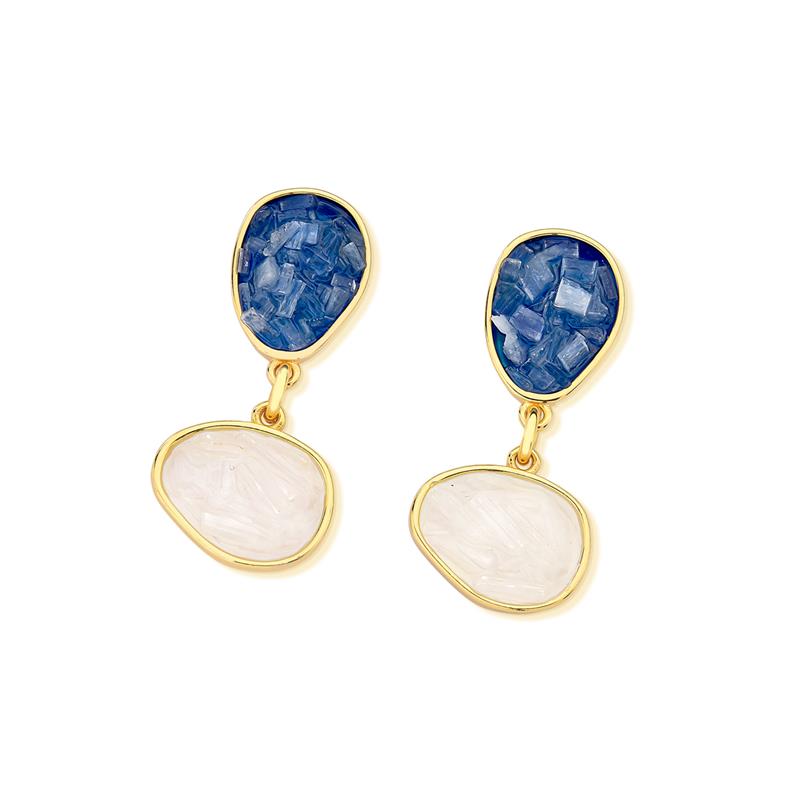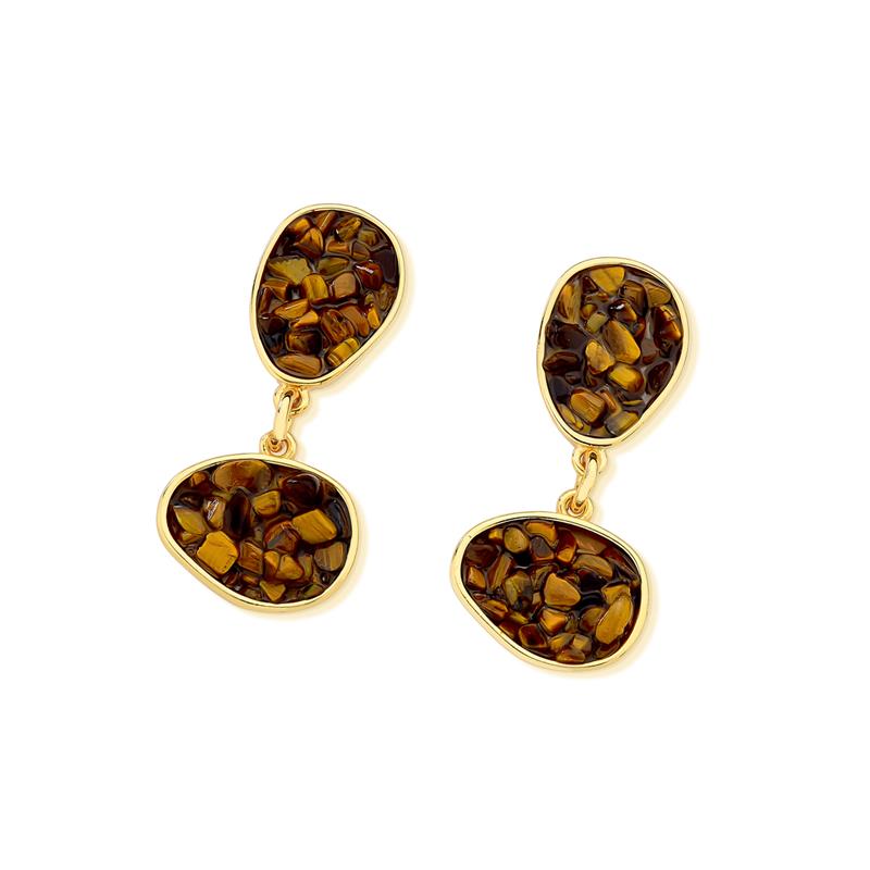 Peça integrante da Coleção Fragmentos, este brinco folheado a ouro apresenta 4cm de altura e design singular. Cada exemplar combina pedras em tons e formatos variados, garantindo originalidade.