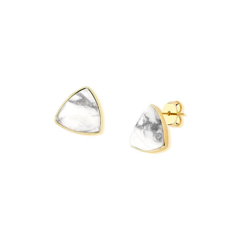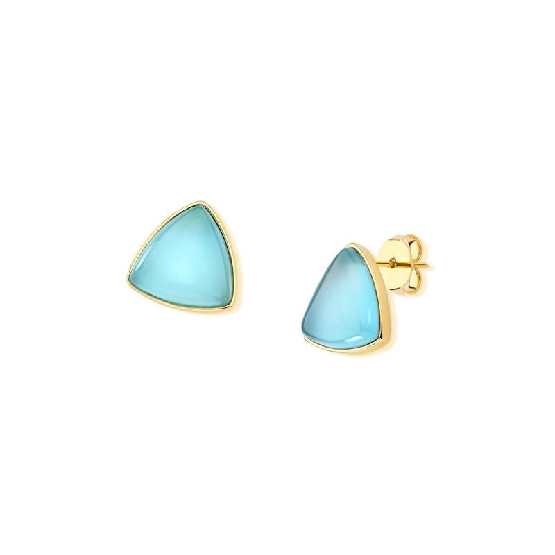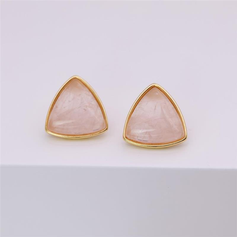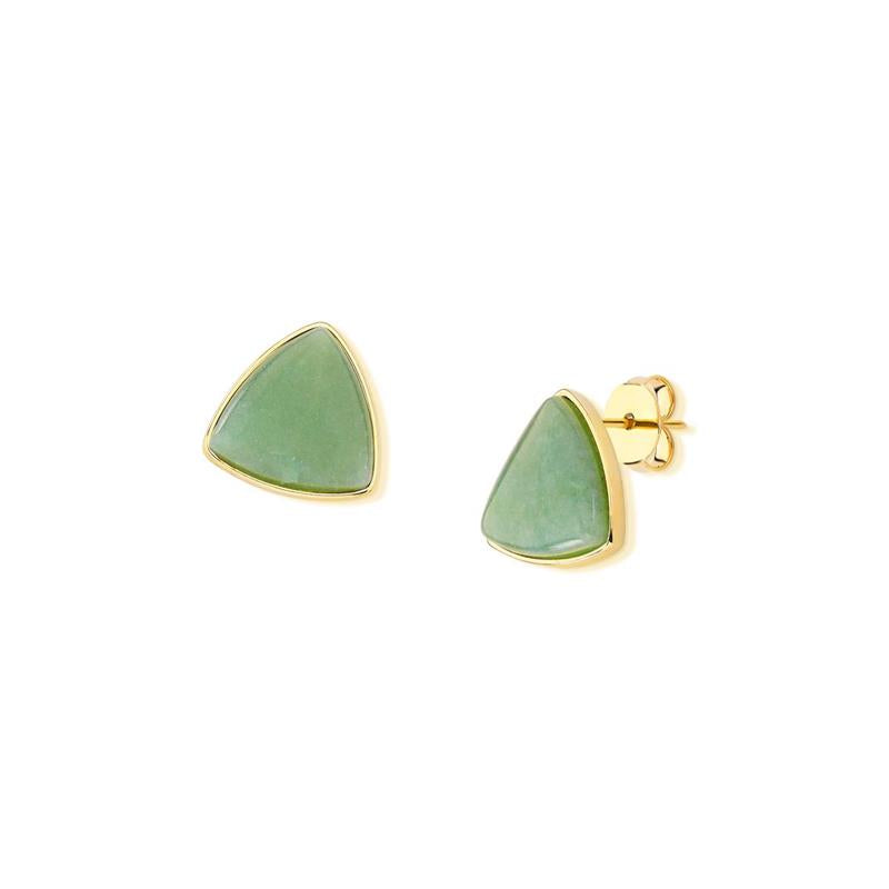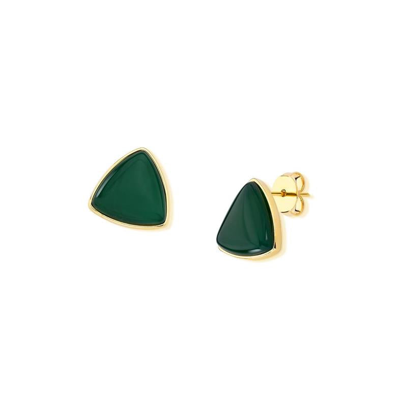 Elegância geométrica encontra a sofisticação natural. Este brinco folheado a ouro apresenta uma pedra cabochão em formato triangular, um detalhe que redefine o clássico com modernidade. Com 1,5cm de altura, oferece proporção perfeita para uso diário ou ocasiões especiais, sem comprometer o conforto.