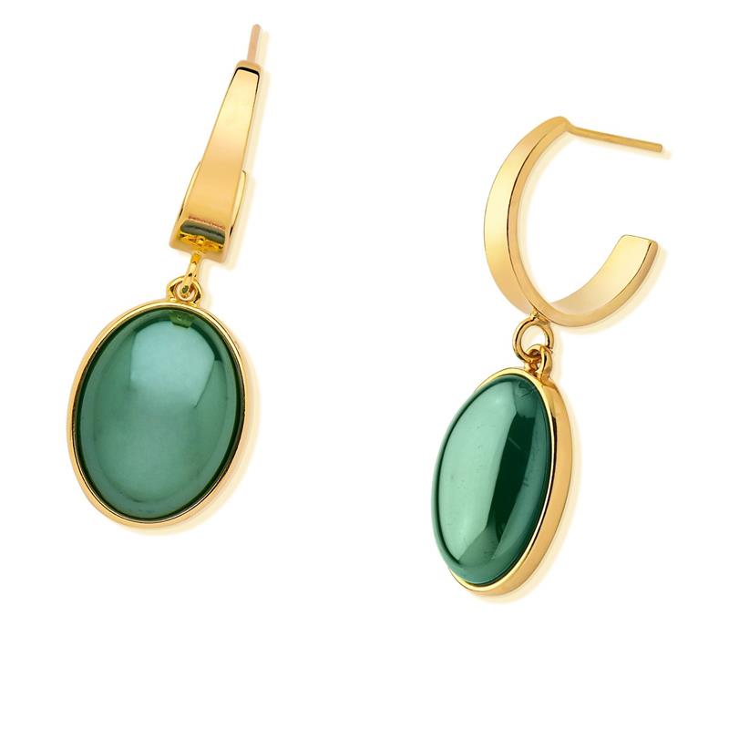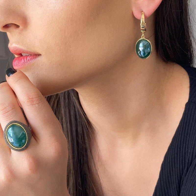 A proporção generosa da pedra oval proporciona presença visual marcante sem comprometer o conforto de uso. Ideal para quem busca um brinco que equilibra sofisticação e praticidade, este modelo é uma escolha segura para elevar qualquer guarda-roupa com um toque de refinamento.