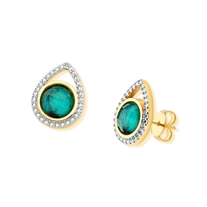 Descubra a elegância atemporal da Coleção Esmeralda. Estes brincos folheados a ouro combinam sofisticação e modernidade com o acabamento em ródio branco, que realça o brilho natural da pedra.