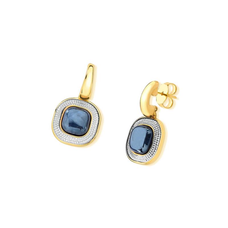 Brinco folheado a ouro com aplicação de ródio branco, apresentando pedra quadrada de 10MM com efeito perolado. O acabamento em ródio branco oferece durabilidade e brilho intenso, enquanto o ouro folheado proporciona elegância atemporal.