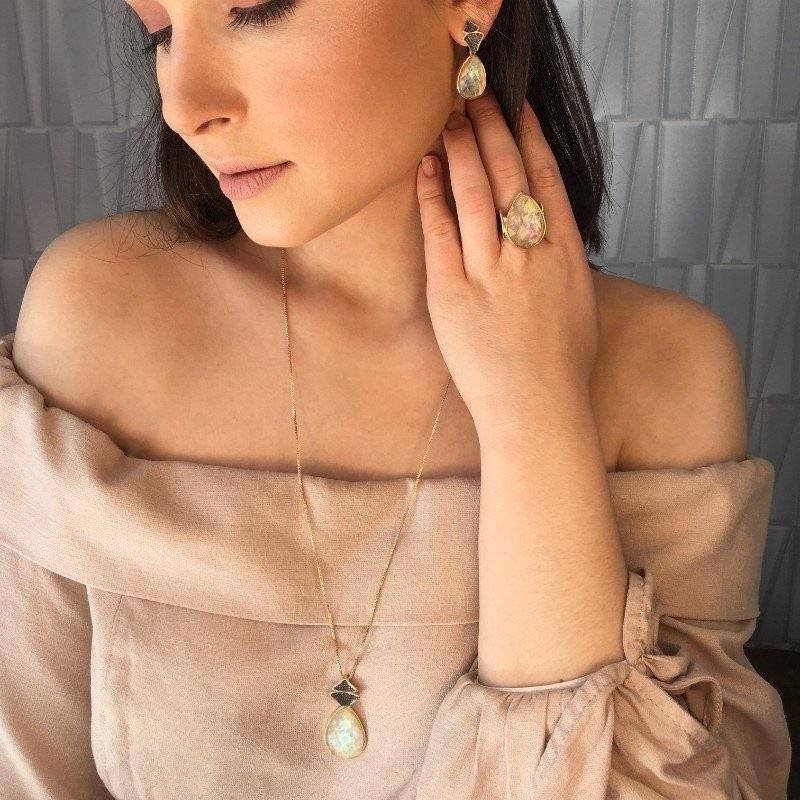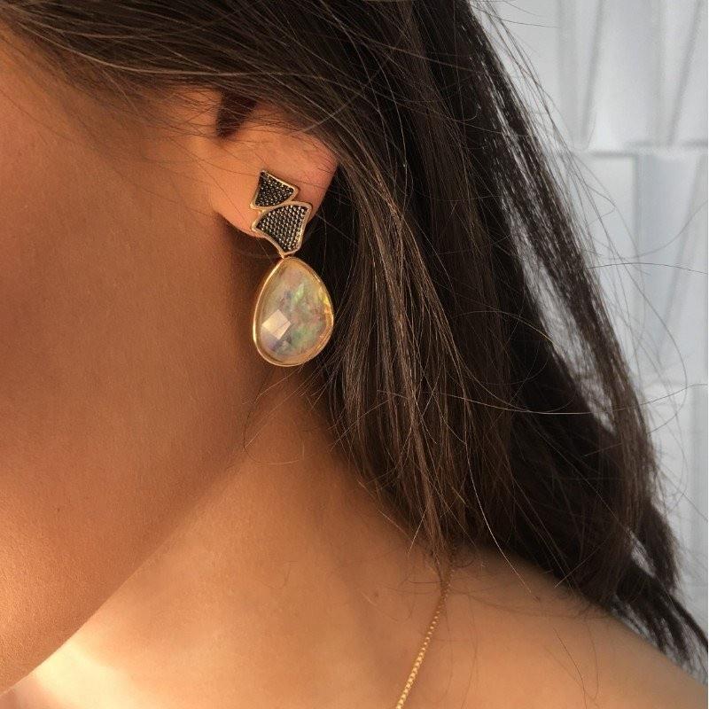 Cada reflexo revela tons que dançam entre azuis, verdes e dourados—uma assinatura da natureza que nenhuma outra gema consegue replicar. Perfeitos para quem busca sofisticação com personalidade, estes brincos transformam qualquer look em uma declaração de estilo. Versáteis o suficiente para o dia a dia, impactantes o bastante para ocasiões especiais.