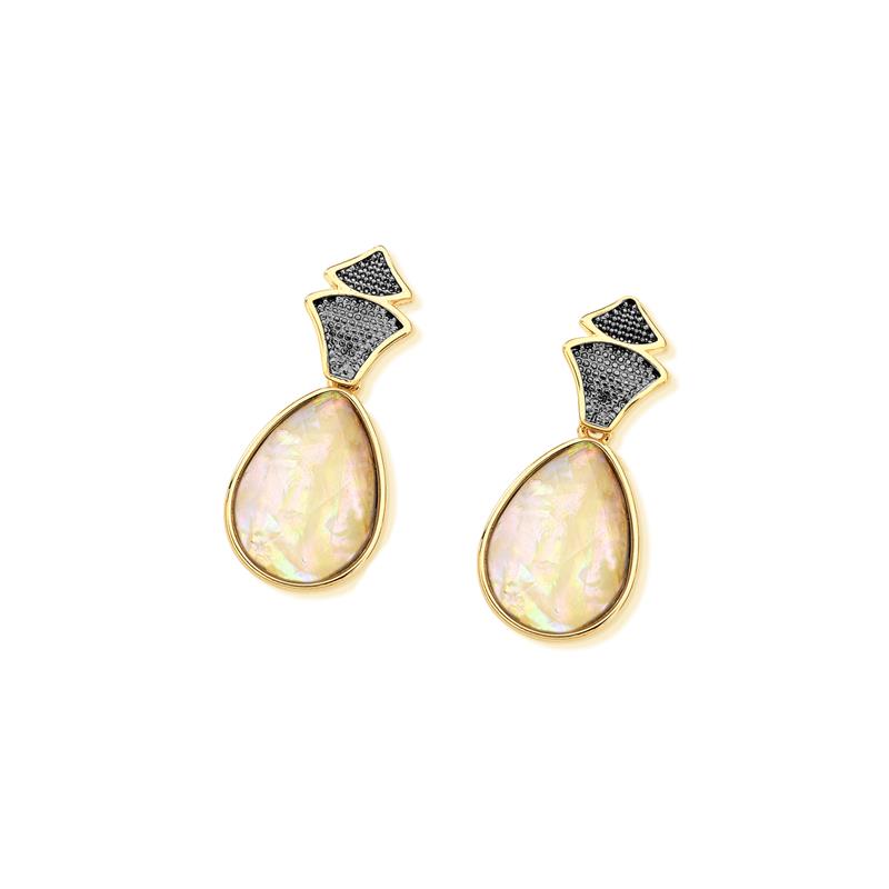 Descubra a elegância do oceano em cada movimento. Estes brincos da Coleção Conchas combinam o brilho sofisticado do ouro folheado com o contraste dramático do ródio negro, criando uma peça que transcende o ordinário. A pedra nautilus em formato gota (13x18mm) captura a essência marinha com sua opalescência hipnotizante, enquanto a opala do mar adiciona profundidade e movimento visual.