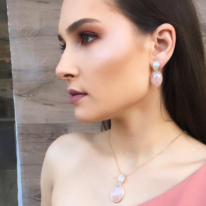 Elegância que brilha em cada movimento. Este brinco combina o calor do ouro folheado com o toque sofisticado do ródio branco, criando um contraste perfeito que realça qualquer look. A pedra natural oval de 14x19mm captura a luz com um efeito perolado delicado, trazendo profundidade e refinamento ao seu rosto. Ideal para quem busca uma joia versátil, sofisticada o suficiente para ocasiões especiais, mas confortável para o dia a dia.