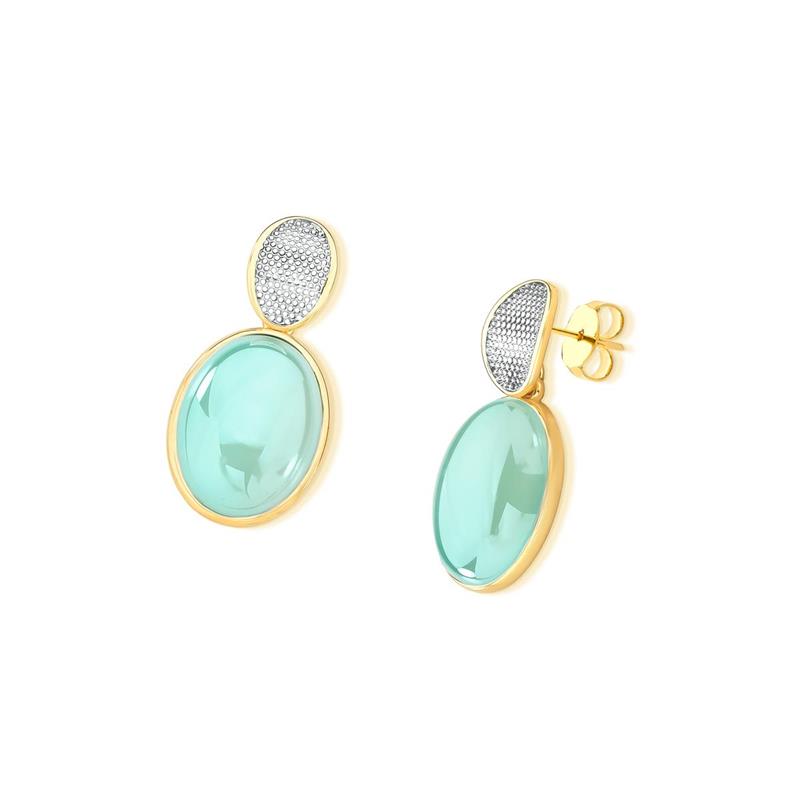 Brinco Possebon Folheado a Ouro e Ródio Branco - Pedra Natural