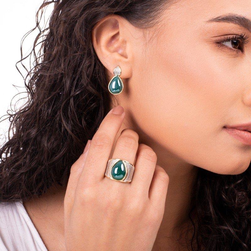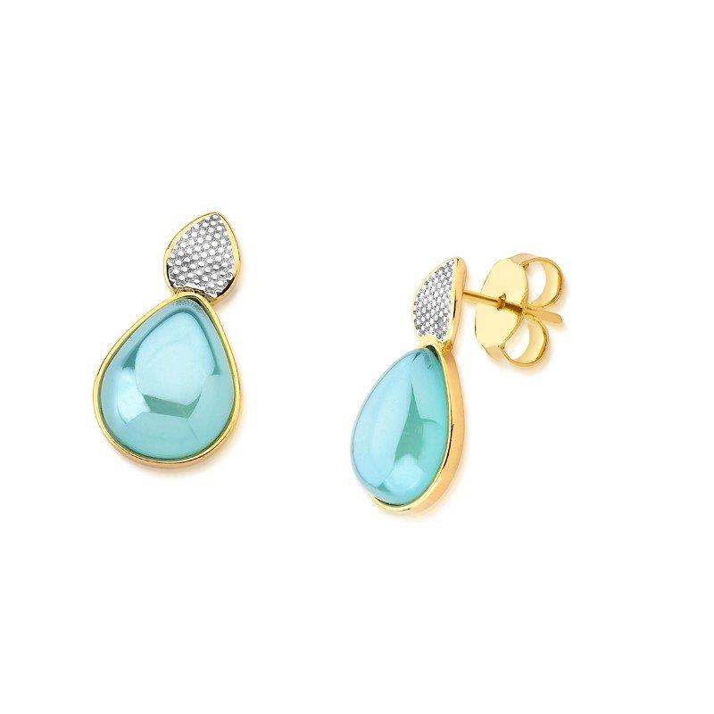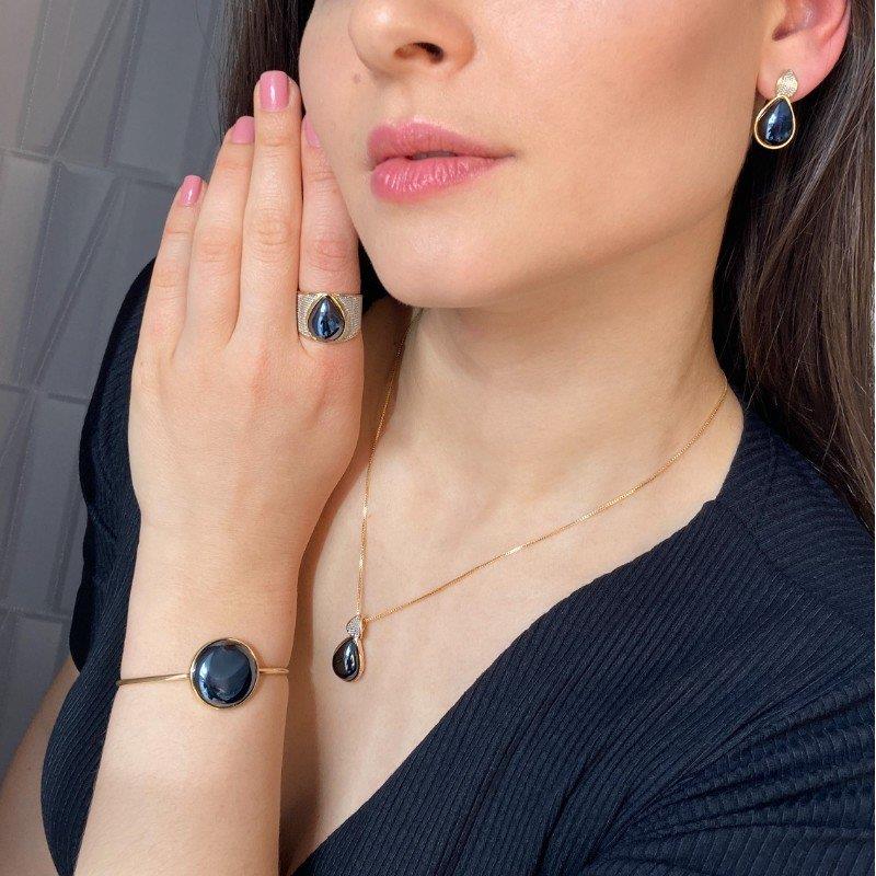 Brinco Possebon Folheado a Ouro e Ródio Branco - Pedra Natural