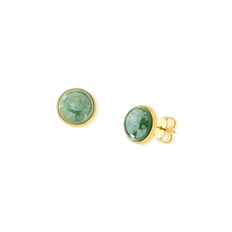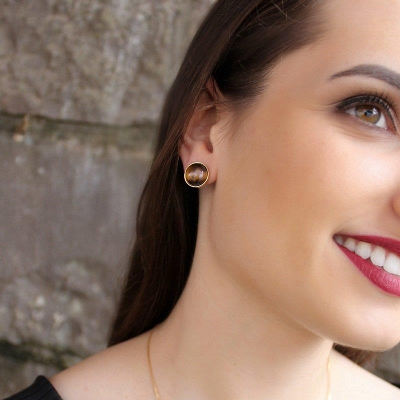 Elegância que brilha a cada movimento. Este brinco folheado a ouro combina o acabamento perolado sofisticado com uma pedra natural redonda de 12MM, criando um acessório versátil que funciona tanto para o dia quanto para a noite.