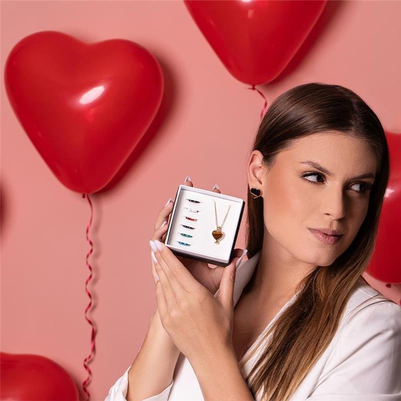 O combo relicário é composto por um pingente relicário, 7 pedras de chapa, em formato de coração 12x13mm. Ainda acompanha corrente Veneziana de 43cm + 7cm de extensor e caixa: um produto pronto para venda e para presentear. O pingente é em formato de coração, tornando-se uma peça apaixonante