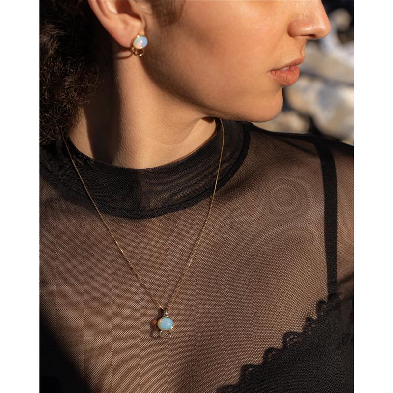 Conjunto elegante e versátil da Linha Básica, composto por brinco e pingente com pedra cabochão oval 8x10mm em acabamento folheado a ouro. A corrente veneziana de 43cm, extensível até 50cm, oferece ajuste perfeito para diferentes ocasiões.