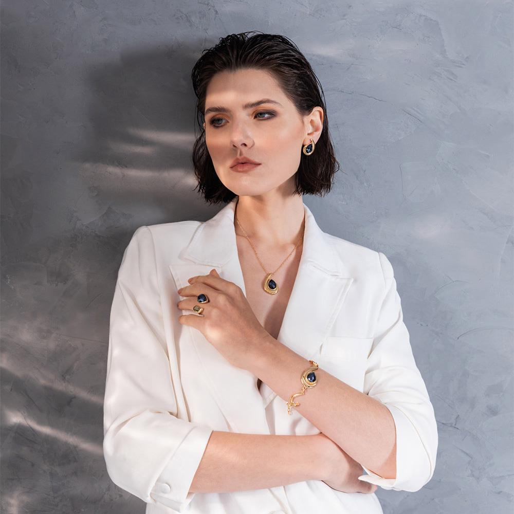 Pulseira Folheada a Ouro - Coleção Acqua Luna A Coleção Acqua Luna une a essência do mar com o encanto lunar em uma pulseira que transcende o simples adorno. Cada peça apresenta uma pedra facetada em formato de gota (10x14mm), cuidadosamente selecionada para capturar e refletir a luz como o brilho da lua sobre o oceano. Inspirada na fluidez da água e na delicadeza do luar, esta pulseira folheada a ouro carrega formas orgânicas que contam histórias de sensibilidade, transformação e poder interior.