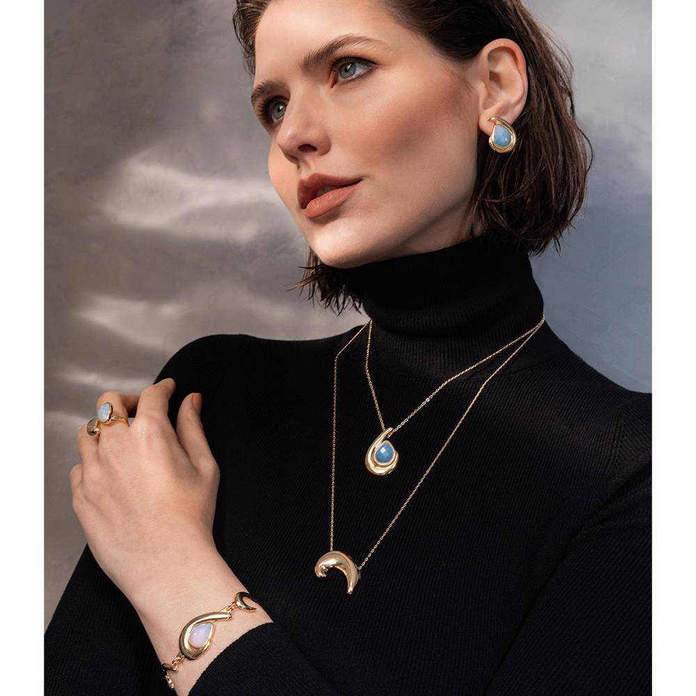 As pedras peroladas facetadas revelam a maestria artesanal, transformando cada movimento em um espetáculo de luz. Acqua Luna é mais que uma joia—é uma declaração de conexão com a natureza e consigo mesma, criada para inspirar quem a usa.
